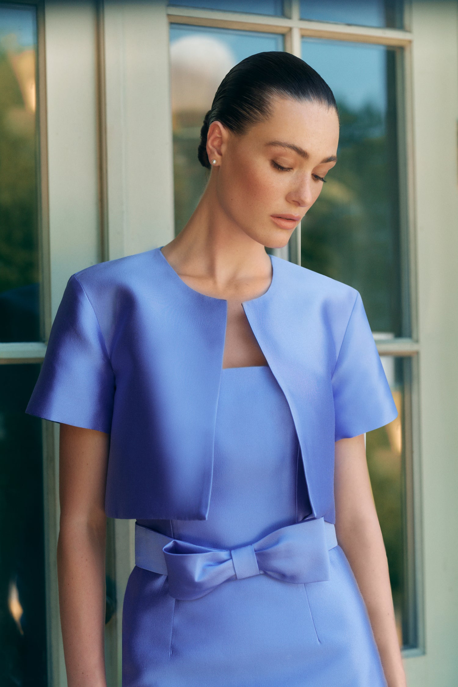 Leonore Silk Faille Column Gown with Detachable Bow Train